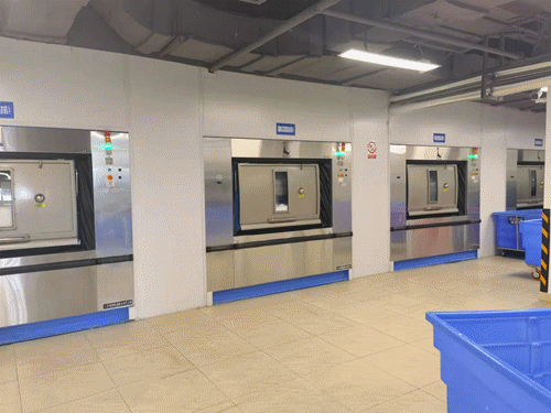 K8凯发国际现在为华西天府医院配置了洗衣龙、卫生隔离式洗涤脱水机、全自动烘干机、四工位展布机、自动熨平机&高速双面烫平机、四辊熨平机、全自动高速折叠机、堆码机、烘干龙、纯蒸汽发生器、脉动真空灭菌器、纯水制备系统等全套洗消设备。并确保所有设备严格按照 WST367-2012《医疗组织消毒技术规范》、WS/T508《医院医用织物洗涤消毒技术规范》等标准规范的要求,设立“两区三通道”(即洁净区、脏污区、工作人员通道、医用织物接收专用通道、医用织物发放专用通道),做到工作流程由污到洁,不交叉、不逆行。并在洁净区和污染区之间设置完全隔离屏障,实施负空气压阻断,使洁污两区之间实现双通道的全封闭式实质性隔断,空气不对流。